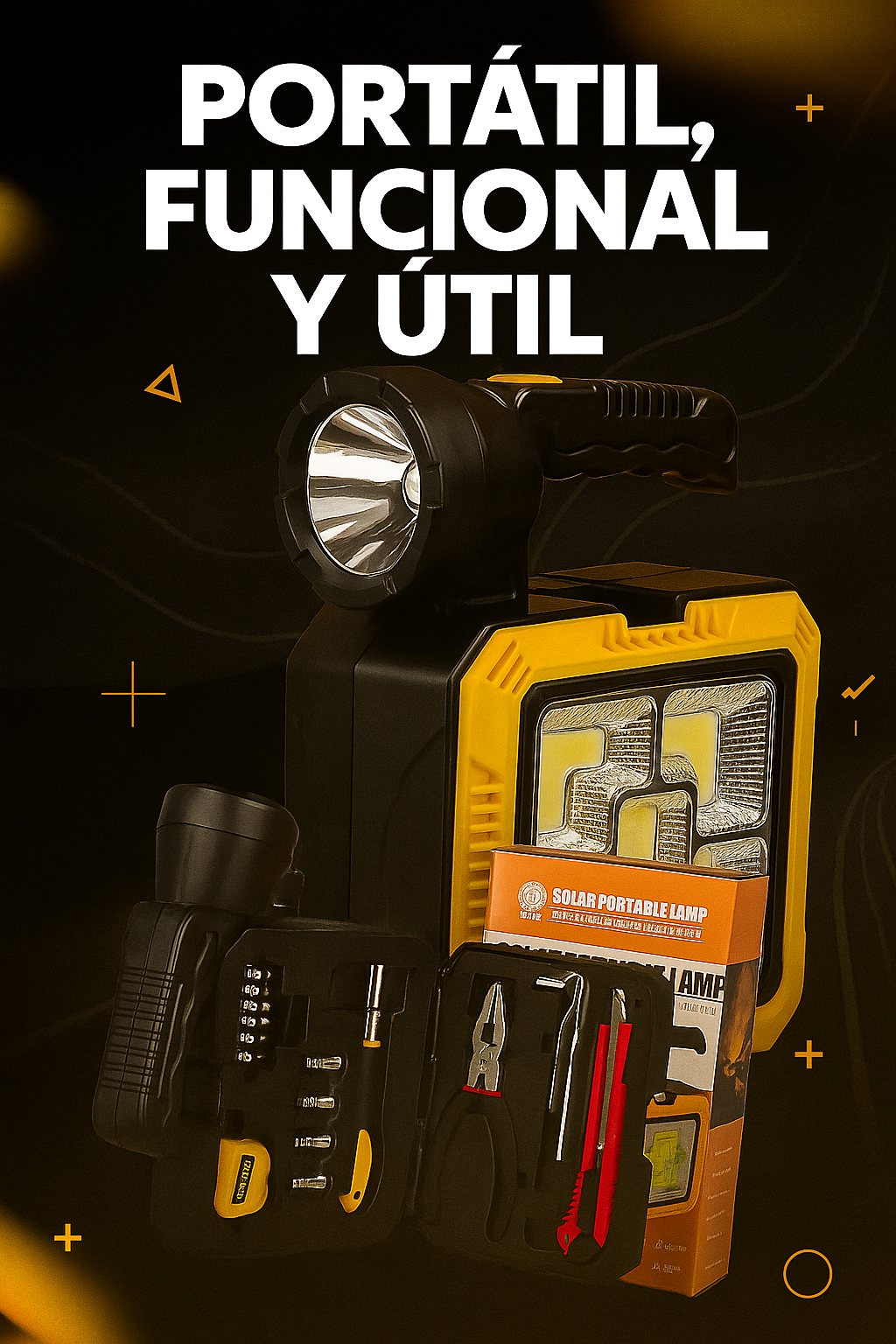 Destornillador, cuchilla, corta frio, llaves básicas y más. Todo en compartimiento integrado.