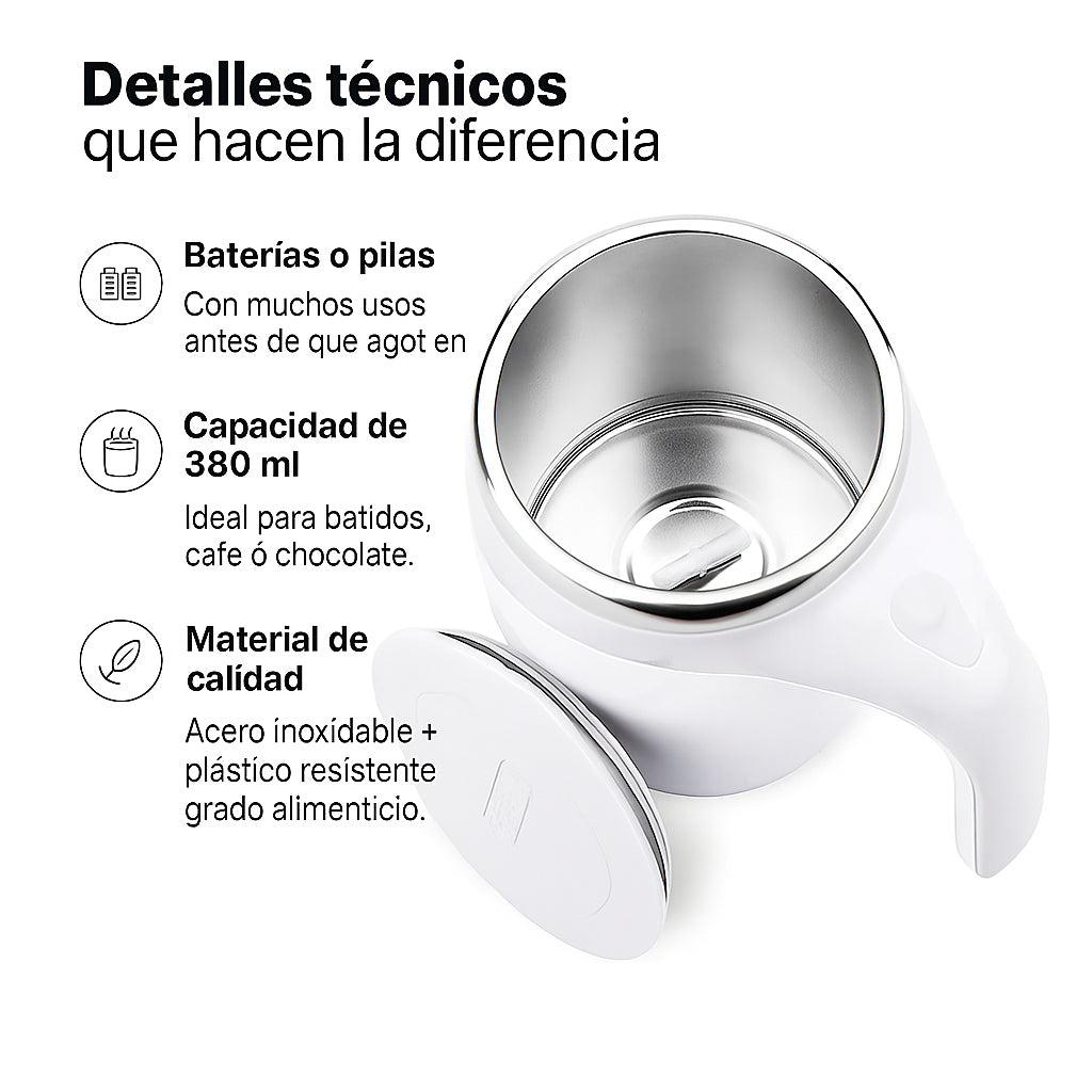 Taza mezcladora automática, recargable y fácil de lavar. Sin esfuerzo, sin desorden. Ideal en cualquier lugar.✅